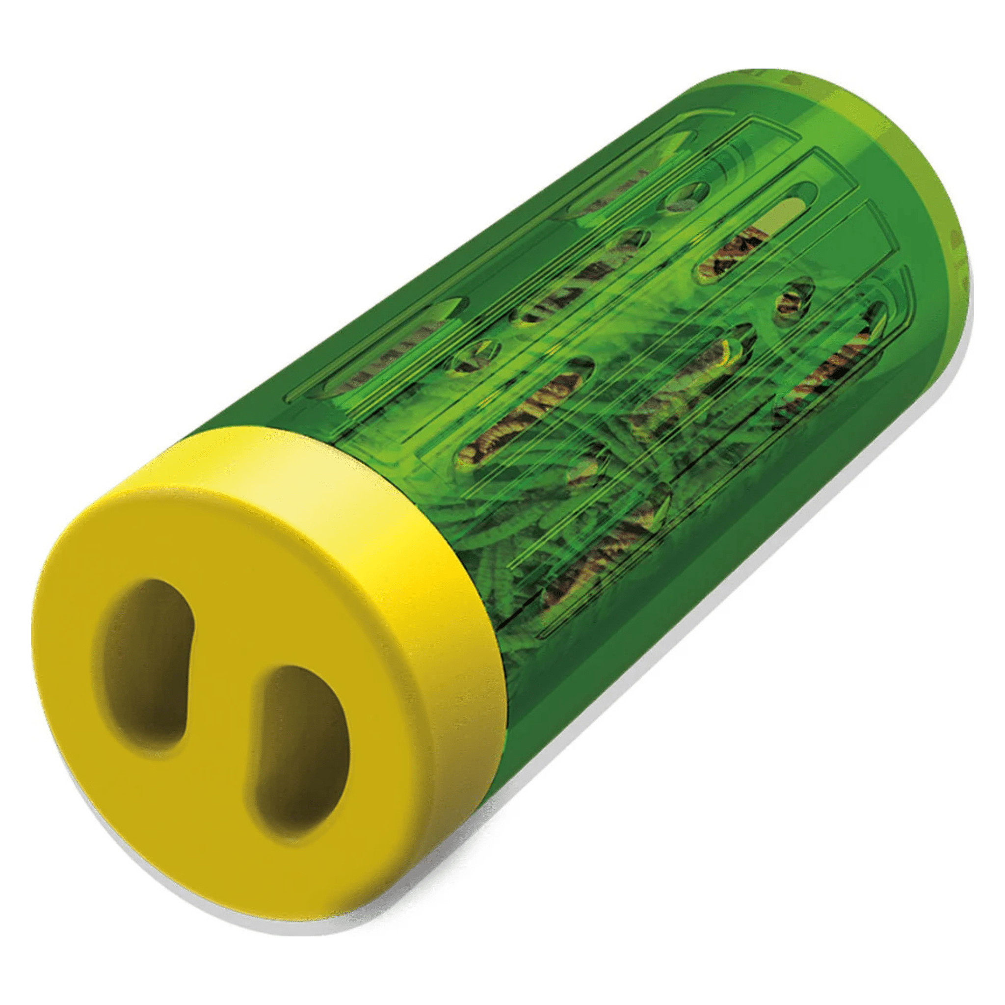 Fill: Unscrew the cap and load with dry treats like black soldier fly larvae, mealworms, cracked corn, or scratch. No wet or sticky foods.