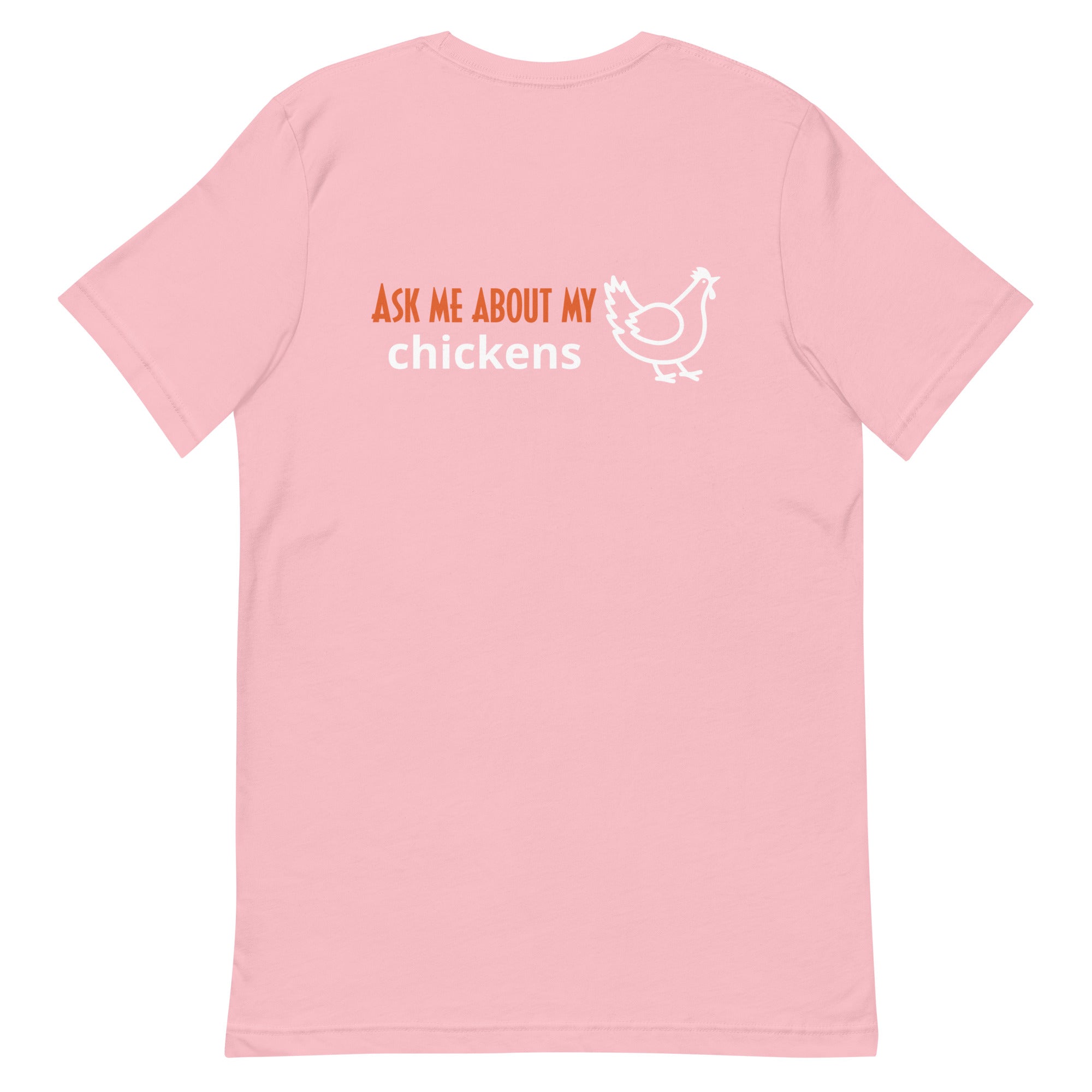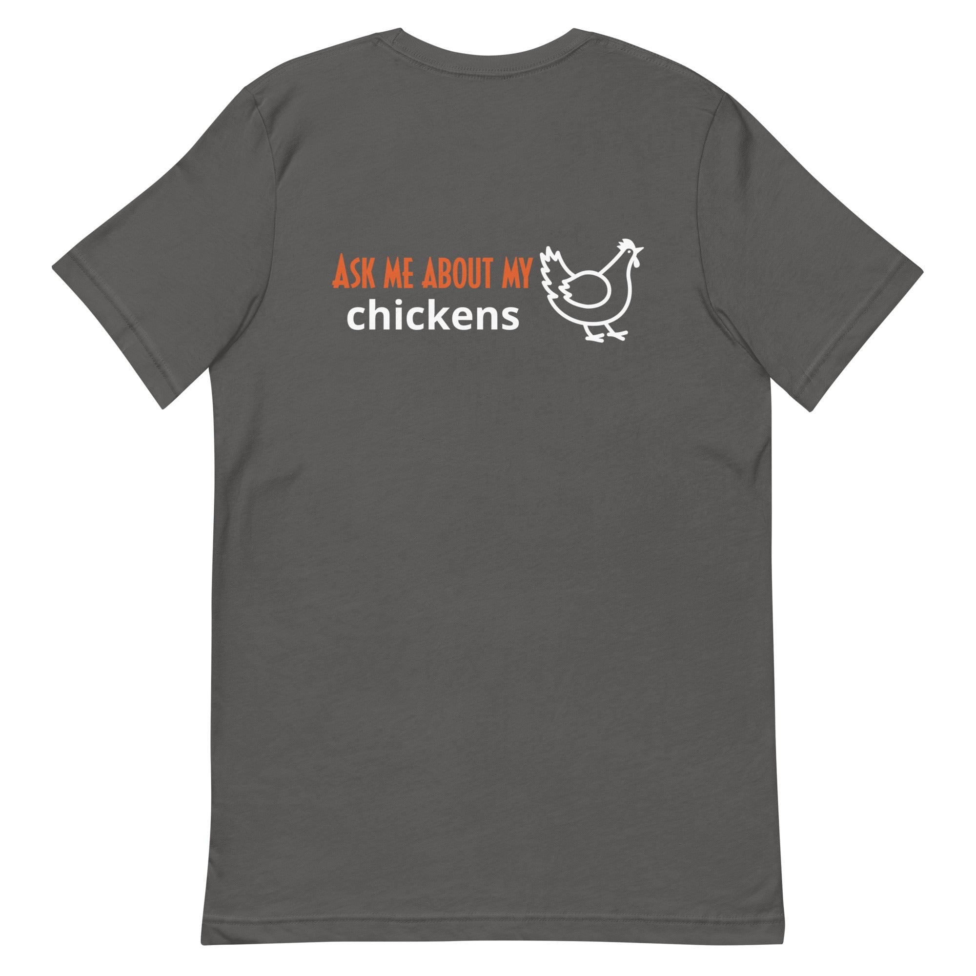 If you’ve ever turned a quick errand into a coop consult, this is your shirt. The Ask Me About My Chickens tee is soft, lightweight, and just stretchy enough to move with chores—then cleans up nicely for the feed store or farmers’ market. The bold back print does the talking while the front stays clean for an easy, everyday look. Throw it on, expect questions, and enjoy converting strangers to chicken math.